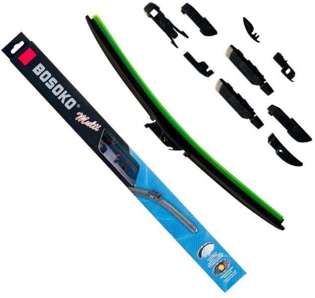 BOSOKO MULTI 21" 530mm univerzális flexibilis ablaktörlő lapát- multiadapteres (9db) - keret nélküli - flexibilis - aerodinamikusA csomagban található 9 féle adapter segítségével az autók 99%-ra felszerelhető.