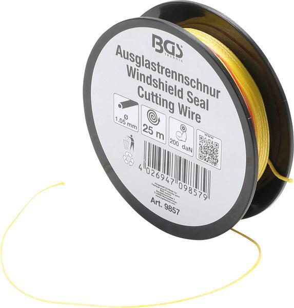 ragasztott szélvédők sérülésmentes kivágásáhoznagyon jó vágási teljesítmény, összehasonlítható a hagyományos fémvágó huzalokévalpuha és rugalmas, megakadályozza a festék és az érzékeny felületek károsodásátSpeciális szövet extrém nagy, 200 daN szakítószilárdsággalBGS 69500, 69505, 8003, 8004 stb. szélvédőkivágó-készlethezBruttó súly: 70 gÁtmérő: 1,