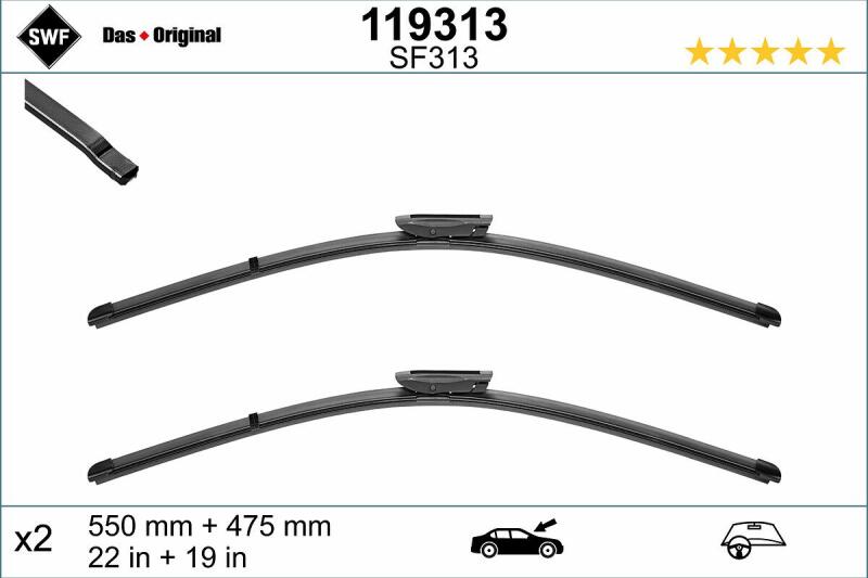 FLAT lapos ablaktörlők szerviz (ipari) csomagolásban, az adott típusú ablaktörlőkarhoz igazodó rögzítés. Az ablaktörlő csak egy „papírtekercsbe" van csomagolva, amelyből az ablaktörlő könnyen eltávolítható (ellenőrizhető, tesztelhető) és esetleg visszahelyezhető a csomagba. Minden törlőcsomagon található egy címke, amelyen egy jelölés található (hosszúságot,