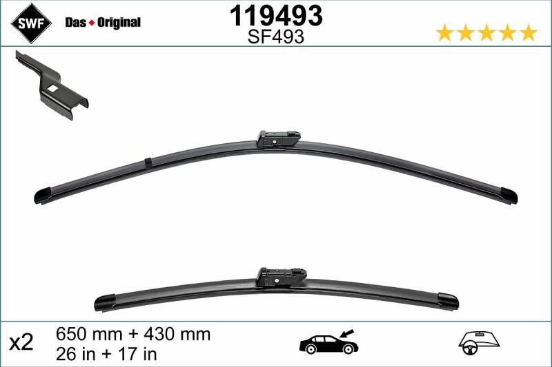 Aerotwin Retrofit Beépítés helye: elöl; Mennyiségi egység: 2 db-os készlet; Hossz 1: 450 mm vezető előtt; Hossz 2: 450 mm utas előtt; Törlőlapát-kivitel: Lapos törlőlapát; Bal-/jobbkormá nyos: balkormányoshoz;