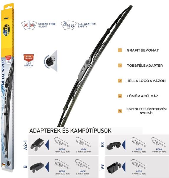 HELLA fémvázas vállfa alakú hagyományos U karos ablaktörlő lapát 480mm 48cm 4090-ért! HELLA METAL ablaktörlők a HELLA-tól: - Kopásmentes grafit bevonatú él a tökéletes hosszú élettartamú törléshez - Környezetbarát és ólommentes - Védő él minden új ablaktörlőhöz - Német prémium HELLA minőség és garancia Kiszállításban partnerünk a GLS , így, ha nincs ottho