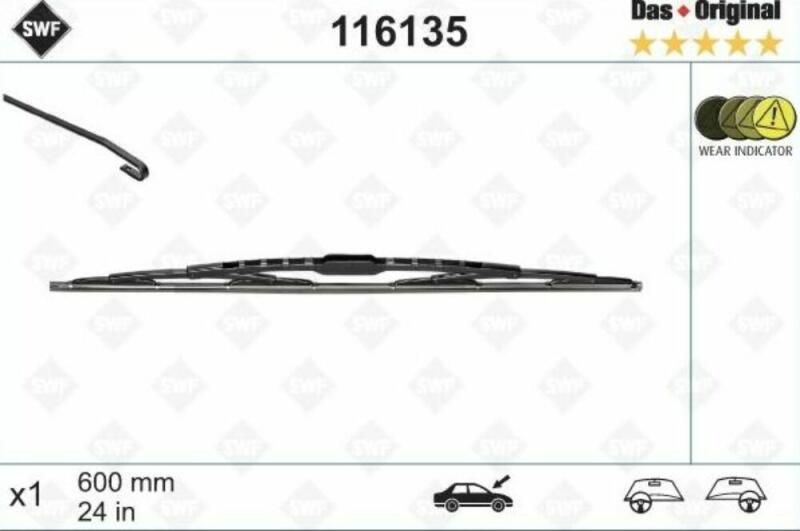Törlőlapát-kivitel : vállfa alakú törlőlapát; Mennyiség : 1; Hossz : 600 mm; Hossz : 24 col;Mellékelt adapter : D; Törlőlapát-kiv itel : Ablaktörlő lapát optikai kopásérzékelővel;DAS ORIGINAL = AZ EREDETI