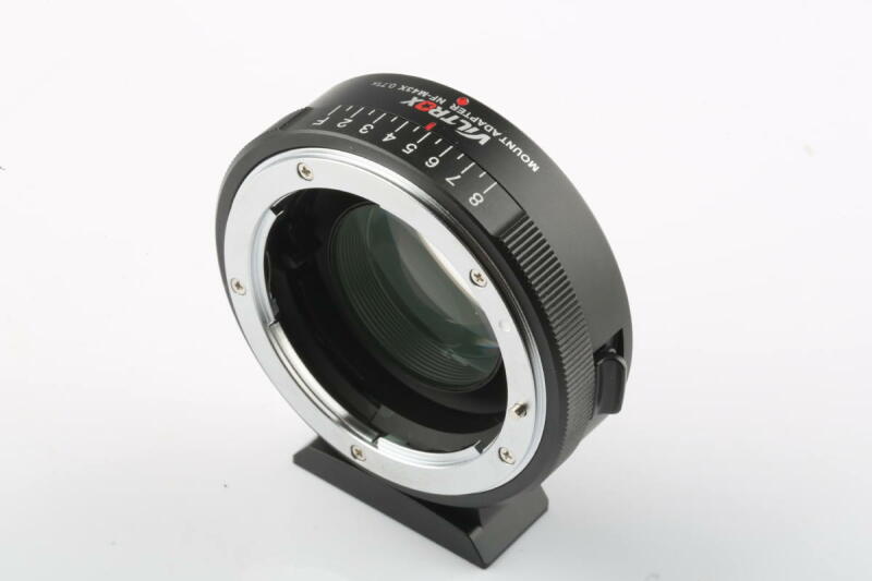 A Viltrox NF-M43X lehetővé teszi a Nikon F bajonettes lencsék használatát Micro4/3 bajonettes fényképezőgépeken manuális fókusz használatával. Kézi beállítással 8 lépésben állítható a rekesz nyílása. 1/4" csavarmenetes az állványra való rögzítéshez.