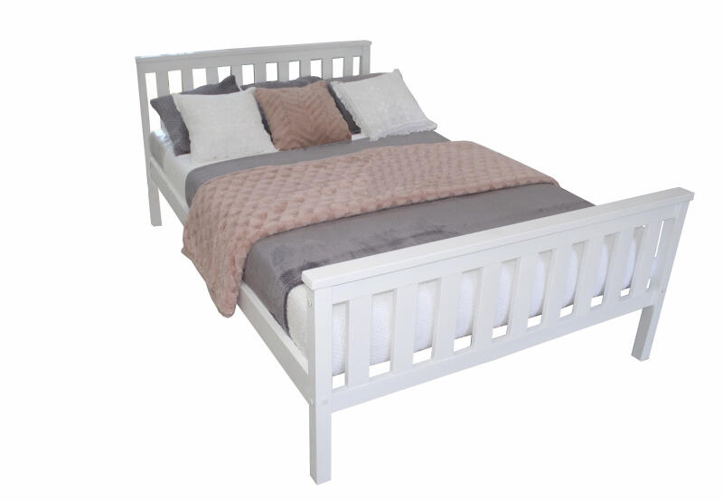 Gyönyörű fehér színű NÓRA franciaágy, amely tömör boroviból készült. A faágy környezetre nem ártalmas ökológiai lakkal van lakkozva, majd csiszolva és újból lakkozva, amelynek köszönhetően gyönyörű végeredményt kapunk. Az ágy nagyon stabil, praktikus és ellenálló. A kialakításának köszönhetően a vidéki és a klasszikus stílusú szobákban is megállja a hel