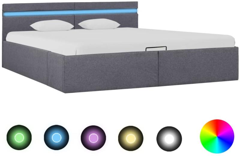 vidaXL sötétszürke LED-es szövetágy hidraulikus tárolóval 160 x 200 cm Ruházza fel modern stílussal hálószobáját ezzel a hidraulikus, szövetkárpitozású ágykerettel! Ez a franciaágy egyszerű, mégis stílusos kialakítású, valamint kompakt felépítéssel rendelkezik erős és robusztus MDF anyagának köszönhetően. A kárpitozott ágy aljában, a matrac alatti rész ágynem