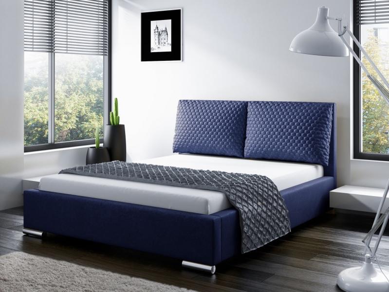 Kárpitozott franciaágy, pneumatikusan nyíló, fémkeretes ágyráccsal, öblös ágyneműtartóval. Választható kárpitok Riviera – bársony