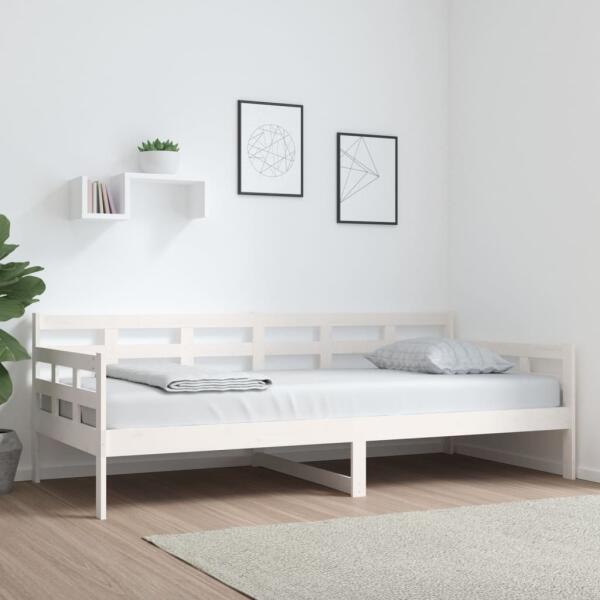 vidaXL fehér tömör fenyőfa kanapéágy 90 x 200 cm Ez a fa kanapéágy tökéletes megoldás váratlan vendégek elszállásolására, napközben pedig kényelmes ülőalkalmatosságként szolgálhat. Tömör fenyőfa: A tömör fenyőfa egy gyönyörű természetes anyag. A fenyőfa erezete egyenes, a csomók adják az anyag jellegzetes, rusztikus megjelenését. Többfunkciós kialakítás:
