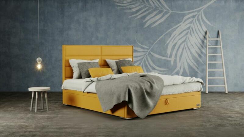 A CORONA ágyneműtartós ágykeret, modern megjelenésű, szögletes vonalvezetésű ágy. Magas fejvége 3-3 téglalapra tagolt, mely kényelmes támaszt nyújt az esti olvasáshoz, beszélgetéshez, tablettezéshez. 4féle árkategóriájú (A, B, C, D) szövetekből rendelhető, kategóriánként több, mint 60 színben. Az árak tartalmazzák az ágyrácsot is. A rács lehet lábvég felől e