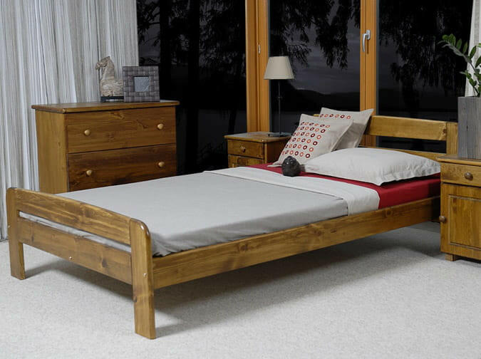 Az ágyteljes egészében természetes fenyőfából készült, ami tartós szerkezetet biztosít. A készlet tartalmaz egy Agabo flexibilis ágyrácsot, amely 14 fenyő lécbőlkészült, kárpitos szalaggal összekötve. A terméket önállóan összeszerelhető csomagolásban szállítjuk. A fotókon látható kiegészítők (pl. fiók, ágyneműtartó stb. ) nem szerepelnek az ajánlatban. Az