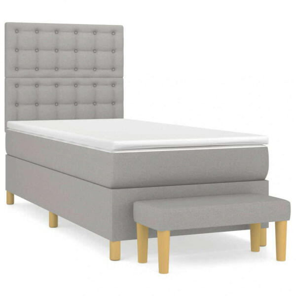 vidaXL világosszürke szövet rugós ágy matraccal 100 x 200 cm Használja ezt a rugós ágyat a pihentető éjszakai alváshoz! Maximális kikapcsolódást és kellemes alvást kínál. Tartós szövet: A szövet egyszerű és letisztult megjelenésű, valamint légáteresztő és tartós. Praktikus fejtámla: Az ágy fejtámla magassága tetszés szerint állítható. Ez az ágyfejléc kivál