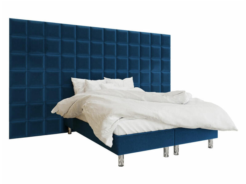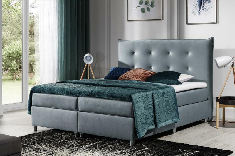 Kárpitozott kontinentális franciaágy, tökéletes kényelmet nyújtó tasakrugós ágybetéttel, topperrel, ágyneműtartó nélkül. Minőségi táskarugós ágybetét, 5 cm magas, nagy rugalmasságú szivacs fedőmatrac. Választható kárpitok Madryt - ekobőrJasmine - kötött szövetRiviera – bársonyJaguar – bársony
