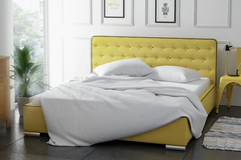 Kárpitozott franciaágy, pneumatikusan nyíló, fémkeretes ágyráccsal, öblös ágyneműtartóval. Választható kárpitok Madryt - ekobőrJasmine - kötött szövetRiviera – bársonyJaguar – bársony