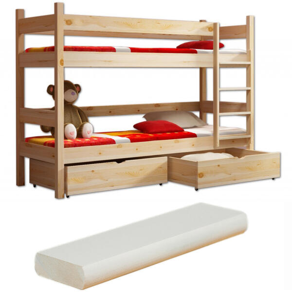 A tömör fa PAULA 2 emeletes ágy 90 x 200 cm fehér színben kapható, háromszor lakkozva fehér, természetre és egészségre nem ártalmas, ökológiai lakkal. Az ágy tömör boroviból készül, ennek köszönhetően a szerkezete nagyon stabil, felnőtteknek is megfelelő. Az emeletes ágy gyorsan és egyszerűen szétszedhető, így két különálló fekhelyként is használható. A lét