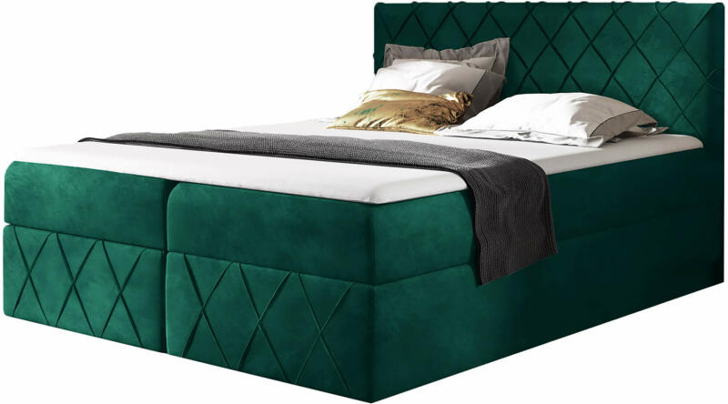 Különleges és nem mindennapi zöld színű Kronos szövettel kárpitozott PAROS Lux ágyneműtartós modern boxspring ágy beépített matracokkal és ágyráccsal, kicserélhető fedőmatraccal. Az 5 centiméter vastag fedőmatrac (Topper) magas rugalmasságú habból készült, amely biztosítja a kényelmes pihenését. Ez a fedőmatrac nincs az ágyhoz rögzítve, így később bármikor ki