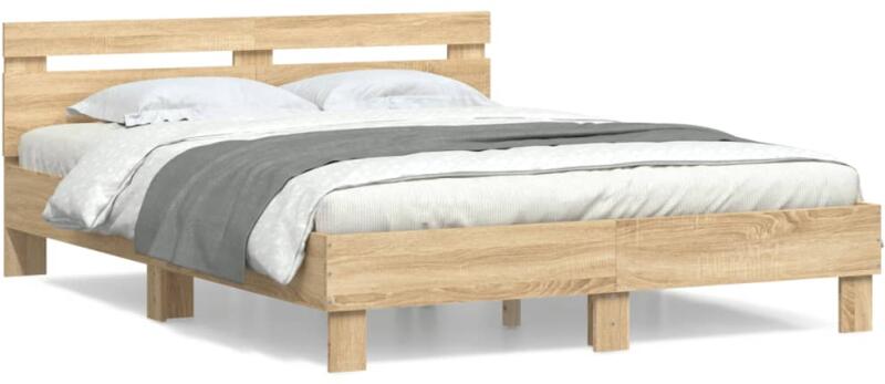Vigyen modern bájt hálószobájába ezzel az ágykerettel! Praktikus és dekoratív kiegészítője lesz életterének. Strapabíró anyag: Ez az ágykeret szerelt fából készült. A szerelt fa kivételes minőségű, sima felületű, szilárd, stabil, és ellenáll a nedvességnek. Erős lécek: A furnérlemez rácsok jó súlyelosztást biztosítanak, így a matrac a helyén marad, amikor é