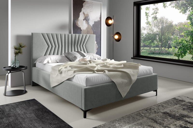 Kárpitozott franciaágy, pneumatikusan nyíló, fémkeretes ágyráccsal, öblös ágyneműtartóval. Választható kárpitok Madryt - ekobőrJasmine - kötött szövetRiviera – bársonyJaguar – bársony
