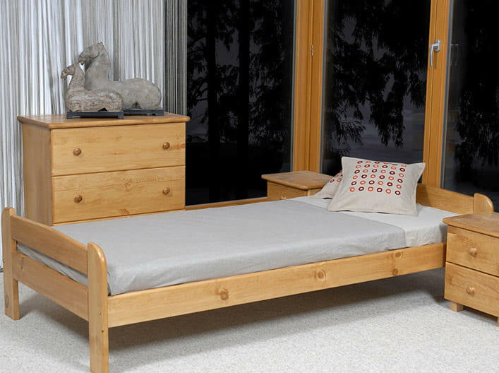 A készlet tartalmaz egy Agabo flexibilis ágyrácsot, amely 14 fenyő lécbőlkészült, kárpitos szalaggal összekötve. A terméket önállóan összeszerelhető csomagolásban szállítjuk. A fotókon látható kiegészítők (pl. fiók, ágyneműtartó stb. ) nem szerepelnek az ajánlatban. A természetes fenyőből készült égerfa színű ágykeret egy elegáns, modern és tartós bútord