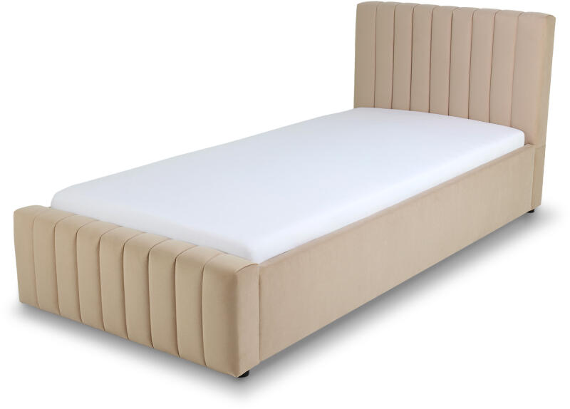 Kárpitozott LAMEA 90x200 egyszemélyes ágy modern bézs színben. A bézs a sokoldalúságának köszönhetően trendi. Illik egy élénk színű szobába, de egy minimalista, természetes színekkel berendezett hálószobába is. Variálhatósága teret ad a kreativitásnak és az ízlésnek. Az ágy mérete klasszikus, de a kárpitozásnak köszönhetően nagyon kényelmes és luxus hatást ke