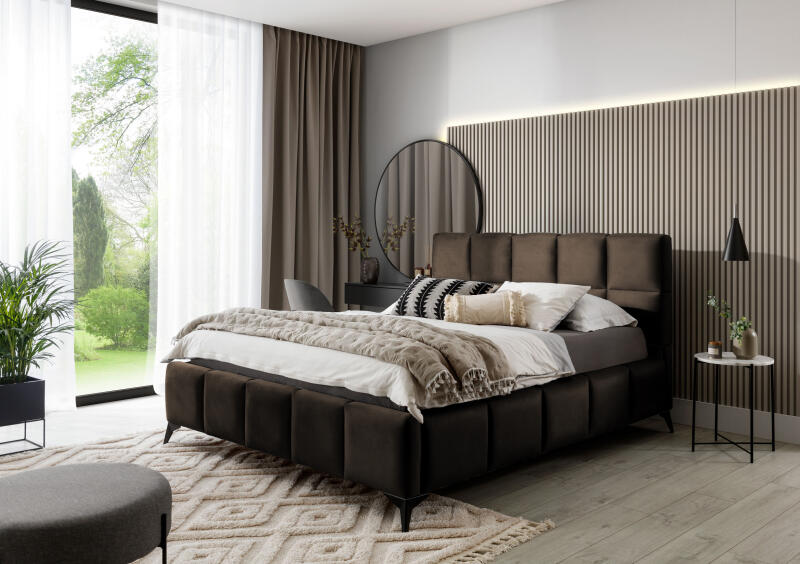 Aludjon jobban ezzel az ágykerettel! Hangulatos kiegészítője lesz bármely hálószobának. Tartós szövet: A szövet egyszerű és letisztult megjelenésű, valamint légáteresztő és tartós. Tömör lábak: Az ágyat erős lábak tartják, amelyek stabilitást, biztonságot és szilárdságot biztosítanak. Furnérlemez lécek: A furnérlemez lécek jó súlyelosztást biztosítanak, íg