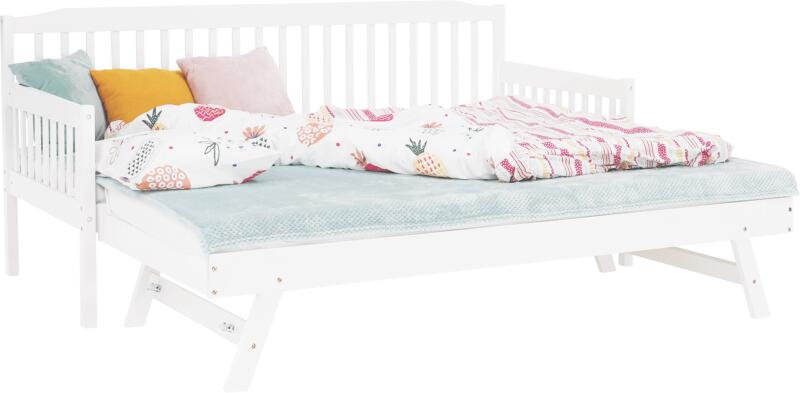 Anyag: fenyő masszív/ furnérlemez (ágyrács) Szín: fehér Méretek (SzxVxH): 212x96x94cm Alvási terület (SzxV): 90x200 cm Alvási terület pótágy hozzáadása után (SzxV): 180x200 cm Matrac max. pótágy magassággal: 16 cm Pótágy kerekeken és összecsukható lábakon Magasság ágyrácsig felső ágy: 37 cm Terhelhetőség: 90 kg Hengerelt ágyráccsal szállítva Szállítás matrac