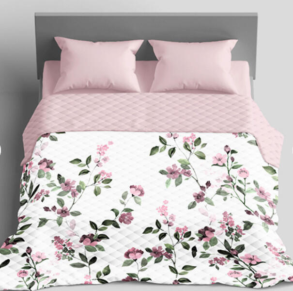 Termék részletekDivatos steppelt ágytakaró fehér színű alapon vidám mályva színű virágszálas motívummal. Ágytakaró hátoldala egyszínű púderrózsaszín. Az ágytakaró mindkét fele használható! Tartalma: - 1 db 220x240 cm-es ágytakaró (díszpárna huzatok nélkül) (Méret eltérés +/- 3 %) Anyaga 100% puha microfiber mikroszál. Steppelt varrás hosszú ideig biztosítja a tartósságot. M