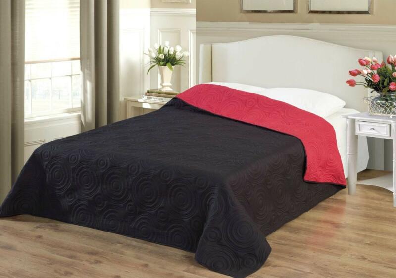 Termék részletekEmily piros-fekete ágytakaró A Naturtex piros-fekete szín-összeállítású, microfiber ágytakarójának fedőanyaga különlegesen szőtt textília, speciálisan könnyű anyag, nem gyűrődik, légáteresztő és mosható. Kiváló tulajdonságainak és könnyű kezelhetőségének köszönhetően ideális választás. Nem igényel vasalást, csak egy simítás, és máris úgy néz ki az