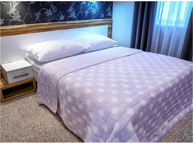 Termék részletekAz ágytakaró LEN matt anyagból készült, természetes vászon szerkezetű. Az alsó oldal finom mikroszálas anyagból készült, ami megakadályozza az anyag elcsúszását, a szövetrétegek közötti puha töltet pedig puhává varázsolja az ágytakarót és esztétikusan fedi az ágyat. Az egészet forrópréses hegesztéssel kötötték össze geometriai cikkcakk formájában.
