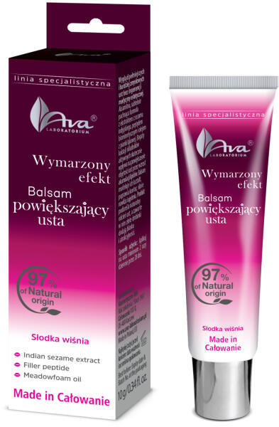 Ava natural ajakfeltöltő és dúsító balzsam booster peptidekkel édes cseresznyével 10 g AVA NATURAL AJAKFELTÖLTŐ ÉS DÚSÍTÓ BALZSAM – LIP BOOSTER - Dúsító és ajakkitöltő biomimetikus peptidekkel - növeli az ajkakban lévő hialuronsav szintézisét. - Indiai szezám kivonattal – növeli az ajkakban lévő lipidek mennyiségét. - Fehér tajtékvirág olajjal – magas bioazo