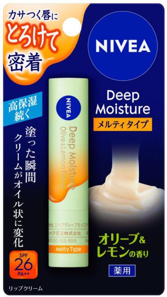 Melty: A rendkívül vízvisszatartó, hosszan tartó fátyol formula, a krém olajszerű konzisztenciává válik a felvitel pillanatában, és rengeteg nedvességet tartalmaz. A hidratáló hatása folytatódik. Rengeteg nedvességet biztosít és megakadályozza az ajkak kirepedezését. E-vitamint és sztearil-glicirretinátot tartalmaz. SPF26, UV-védő összetevőket tartalmaz, hogy megvédj