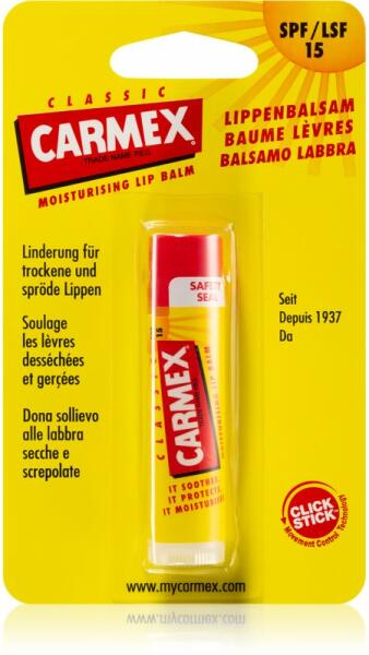 Carmex Classic, 4.25 g, Ajakbalzsamok nőknek, Az ajkak érzékeny bőre nap mint nap különféle igénybevételnek van kitéve, az élelmiszerekkel való gyakori érintkezéstől kezdve a kedvezőtlen időjárási körülményekig. Ezért különleges gondoskodást érdemelnek. A minőségi Carmex Classic ajakbalzsam nélkülözhetetlen segítséget jelent az ajkak érzékeny bőrének mindennap