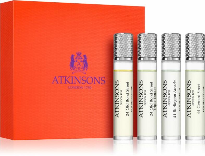 Termék részletekAtkinsons Iconic James, 1 db, Uniszex szettek unisex, A szett tartalma:Atkinsons 24 Old Bond Street Eau de Cologne 10 ml Atkinsons 41 Burlington Arcade Eau de Parfum 10 ml Atkinsons 44 Gerrard Street Eau de Cologne 10 ml Atkinsons 24 Old Bond Street Triple Extract Eau de Cologne 10 ml