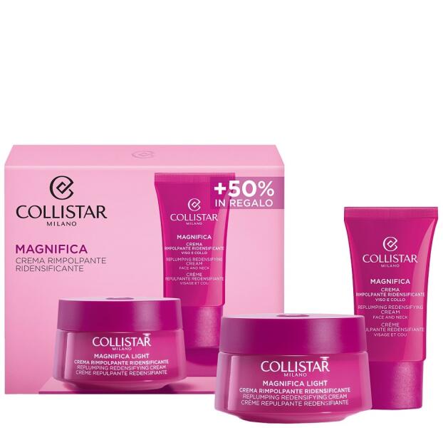 A szett tartalma: Könnyű krém a bőr sűrűségének helyreállításához Magnifica Light (Replumping Redensifyng Cream) 50 ml Krém a bőr sűrűségének helyreállítására Magnifica (Replumping Redensifyng Cream) 25 ml