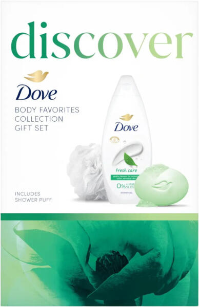 DOVE Discover tus&szappan ajándékcsomag fürdőpamaccsal. A csomag tartalma: Dove krémtusfürdő 250ml Fresh Care, DOVE krémszappan 90g Refreshing, fürdőpamacs. Frissülj fel a csomagban található Dove Fresh Care krémtusfürdővel és gyengéd Refreshing krémszappannal. A kezed helyett a csomagban található ajándék fürdőpamaccsal vidd fel a krémtusfürdőt a bőrödre. Ez seg
