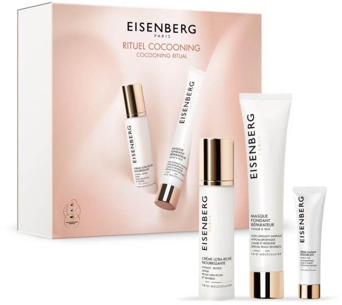 Eisenberg Cocooning Ritual, , arc szérumok nőknek, Minden egy csomagban, amire a szép megjelenésű arcbőrre szükség lehet. A kiváló Eisenberg Cocooning Ritual kozmetikai készlet önnek, és ajándékként a szeretteinek is örömet szerez. A szett tartalma:Eisenberg Classique Crème Ultra-Riche Nourrissante tápláló krém a nagyon száraz és érzékeny bőrre 50 ml Eisenberg Classique