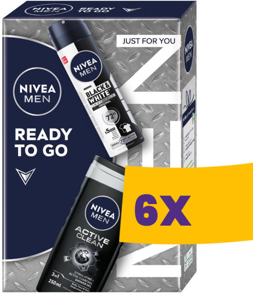 Nivea Ready to Go Ajándékcsomag. Fedezd fel a frissesség érzését újra és újra! A csomag tartalma: Nivea Active Clean tusfürdő 250ml, Nivea Black&White Original izzadásgátló spray 150ml Az Active Clean tusfürdő aktív szénnel gazdagított formulája hatékonyan távolítja el zuhanyzás közben a szennyeződéseket a bőr felületéről anélkül, hogy kiszárítaná azt. Karak