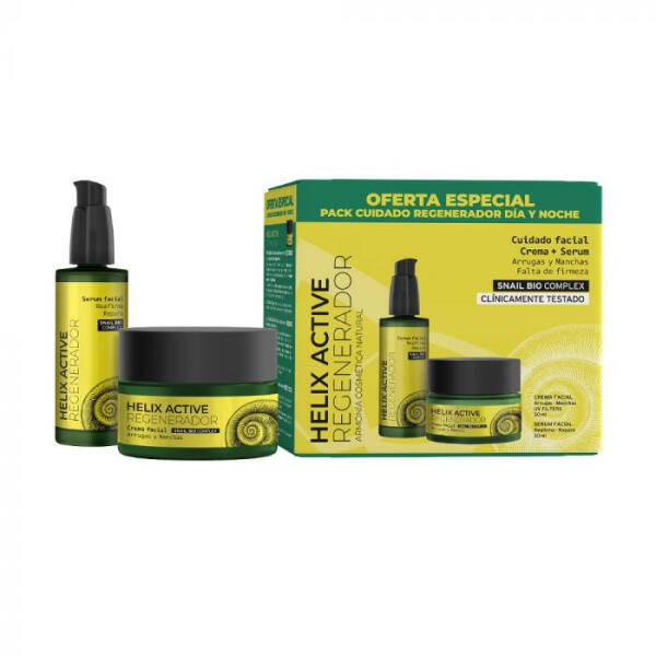 RÁNCTALANÍTÓ - REVITALIZÁLÓ - PIGMENTFOLT CSÖKKENTŐ Szett tartalma: Armonía Helix Active Öko csiga krém 50ml: Bőrmegújító arckrém igazolt öko csiganyál kivonattal, aloe verával és körömvirággal. Sejtmegújító hatású, feltölti a ráncokat, csökkenti a bőrhibákat és a pigmentfoltokat, hidratál, óvja és teljes mélységében újraépíti a bőrt. A világon első és