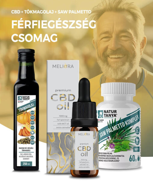 3 készítményből összeállított csomag a prosztata és az egészséges szexuális működés támogatására Prémium CBD olaj + Tökmagolaj + Saw Palmetto komplex Férfiegészség Csomag Ezt a csomagot kifejezetten a férfiak, ezen belül is kiemelten a 40 év feletti korosztály igényeit figyelembe véve alakítottuk ki. A csomagban található termékek egyenként is remek hatással vanna