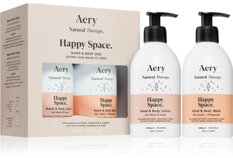 Aery Aromatherapy Happy Space, 1 db, Kozmetika szettek nőknek, Egy csomagban minden a szép bőrért. A praktikus Aery Aromatherapy Happy Space kozmetikai készlet Önnek, és ajándékként a szeretteinek is örömet szerez majd. A szett tartalma: kéz és testápoló krém 300 ml folyékony szappan kézre és testre 300 ml Tulajdonságok: bársonyosan finom tapintású bőrt hagy maga után mé