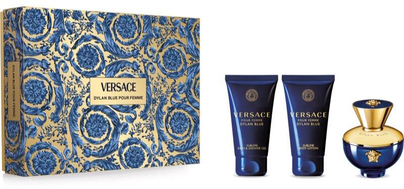 Versace Dylan Blue Pour Femme, , Női szettek nőknek, Tulajdonságok: minden nőnek örömöt szerez a szettként ajándékozott illat megsokszorozza az örömöt A szett tartalma:Eau de Parfum 50 ml tusoló- és fürdőgél 50 ml testápoló tej 50 ml