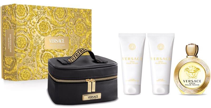 Versace Eros Pour Femme, , Női szettek nőknek, Tulajdonságok: ajándéknak kiváló minden nőnek örömöt szerez A szett tartalma:Eau de Toilette 100 ml tusoló- és fürdőgél 100 ml testápoló tej 100 ml kozmetikai táska 1 db