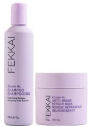 Az ultraibolya pigmentek, faszén és bambusz kivonat szabadalmaztatott keverékével a FEKKAI Blonde Rx Collection biztonságos minden hajtípusra, festett és kémiailag kezelt hajra. Ideális a rezes, sárgás árnyalatokat és töredezést tapasztaló szőkék számára. Tartalma: Fekkai Blonde Rx Sampon 250 ml Fekkai Blonde Rx Hajmaszk 222 ml Használat: Alaposan nedvesítsd be a hajad, majd
