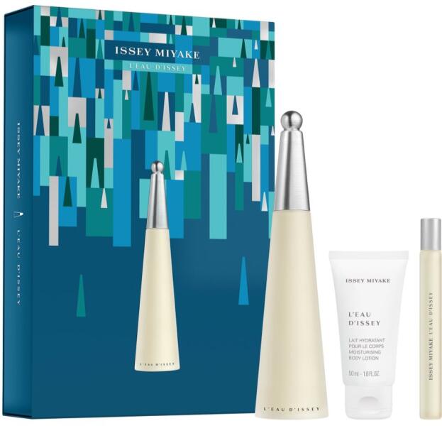 Issey Miyake L'Eau d'Issey, , Női szettek nőknek, Soha többé nem kell elbúcsúznia hosszú időre az illatától. A női Issey Miyake L'Eau d'Issey parfüm-szett tartalmazza az illat teljes és miniatűr verzióját is. Könnyen megtalálja helyét a legkisebb retikülben is. Rendelkezésére áll bármikor a nap folyamán, hogy beburkolhassa összetéveszthetetlen aromájába. Tulajdonságok