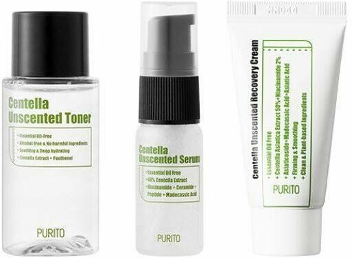 A Purito szettje három mini illatmentes terméket tartalmaz, amelyek mindegyike nyugtatja az irritált arcbőrt. A Purito Centella illatmentes mini szett otthon és utazás közben is gondoskodik arról, hogy arcbőröd mindig egészséges és ragyogó legyen. Purito Centella Unscented Toner 10% centella asiatica kivonattal és panthenollal nyugtatja az irritált arcbőrt. 5.5-ös alacsony, bőrb
