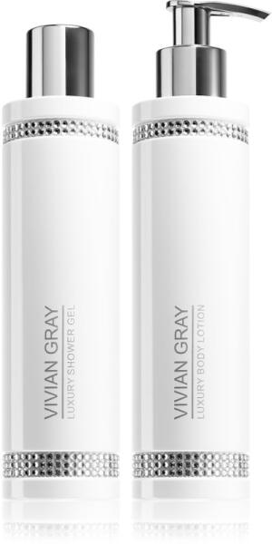 Vivian Gray Crystals White, , Kozmetika szettek nőknek, Lepje meg magát vagy szeretteit kozmetikai szettel. A szett tartalma:Vivian Gray Crystals White tusfürdő gél 250 ml Vivian Gray Crystals White testápoló tej 250 mlTulajdonságok: mélyrehatóan tápláló és hidratáló termékek bársonyosan finommá és selymessé teszi a bőrt jól felvihető, könnyen felszívódik lemossa a bőrt