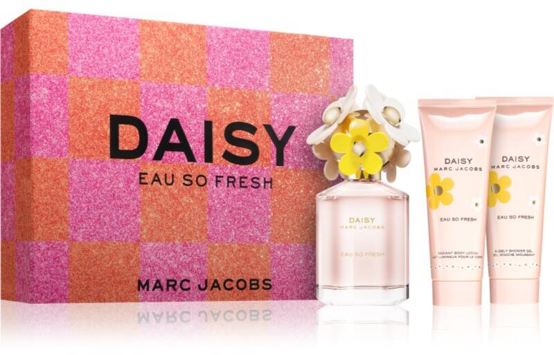 Marc Jacobs Daisy Eau So Fresh, , Női szettek nőknek, A különleges alkalmak különleges ajándékokat kívánnak, akár magának, akár szeretteinek szeretne örömet szerezni. A Marc Jacobs Daisy Eau So Fresh ajándékszett illatok és kozmetikai termékek olyan, gondosan kiválogatott és szeretettel összeállított kombinációját tartalmazza, amelyek garantáltan mosolyt varázsolnak az