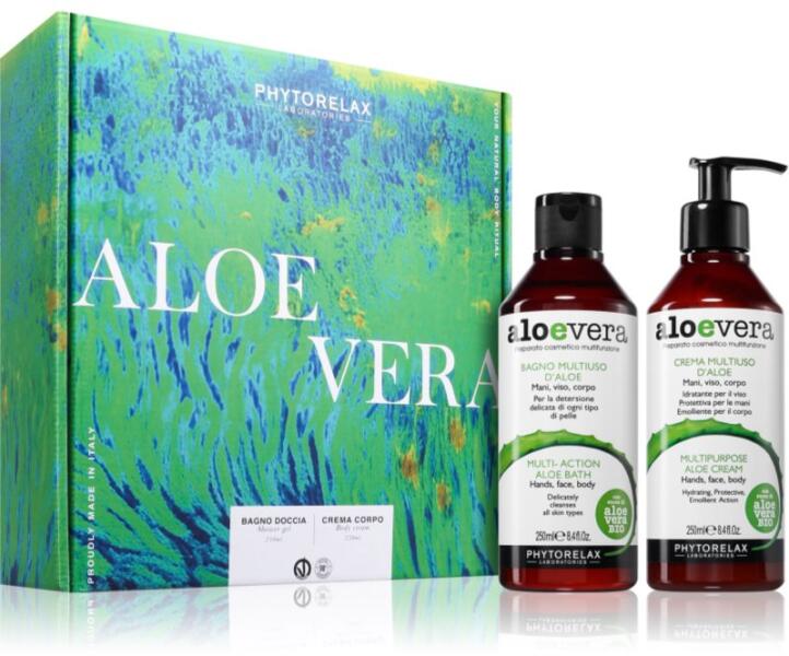 Phytorelax Laboratories Aloe Vera, , Kozmetika szettek nőknek, Egy csomagban minden a szép bőrért. A praktikus Phytorelax Laboratories Aloe Vera kozmetikai készlet Önnek, és ajándékként a szeretteinek is örömet szerez majd. A szett tartalma:Phytorelax Laboratories Aloe Vera multifunkciós arcápolás aloe verával 250 ml Phytorelax Laboratories Aloe Vera tusoló- és fürdőgél aloe v