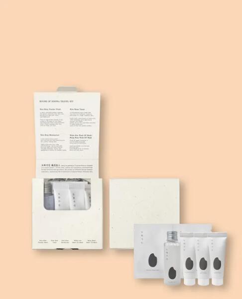 A House of Dohwa Travel Kit kényelmes utazáshoz, mert a bőrápolási termékek legkelendőbb termékeit tartalmazza! Ezzel a készlettel otthon hagyhatod kedvenc termékeidnek nagy mennyiségét, és magaddal viheted azok mini változatát? A készlet a következőkből áll: ✨ Tisztítópor A termék vízzel aktiválódik, és a fő összetevőt tartalmazza a rizskorpát, amely gyengéden h