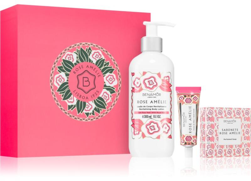 Benamôr Rose Amélie, , Kozmetika szettek nőknek, Egy csomagban minden a szép bőrért. A praktikus Benamôr Rose Amélie kozmetikai készlet Önnek, és ajándékként a szeretteinek is örömet szerez majd. A szett tartalma:Benamôr Rose Amélie Loção Corporal revitalizáló testápoló tej 300 ml Benamôr Rose Amélie Creme de mãos kézkrém 30 ml Benamôr Rose Amélie Sabonate Soap parf