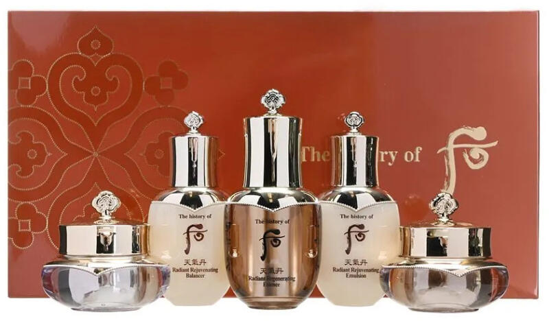 A doboz tartalma: Cheongidan Radiant Rejuvenating Balancer Hidratáló Arctonik 25ml Cheongidan Radiant Rejuvenating Emulzió 25ml Cheongidan Radiant Regenerating Esszencia 8ml Cheongidan Radiant Regenerating Szemkörnyék Szérum 5ml Cheongidan Radiant Regenerating Arckrém 10ml Gyártási hely: Koreai Köztársaság Összetevők:[Cheongidan Radiant Rejuvenating Balancer] Water, Dipropylene Glyco
