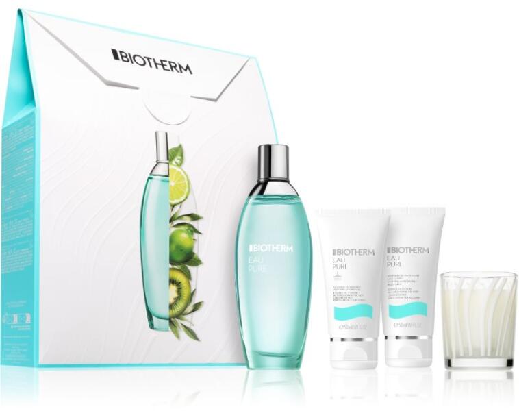 Biotherm Eau Pure, 1 db, Női szettek nőknek, Lepje meg magát vagy szeretteit Biotherm Eau Pure kozmetikai szettel. A szett tartalma:Biotherm Eau Pure Eau de Toilette 100 ml Biotherm Eau Pure felfrissítő tusfürdő gél minden bőrtípusra 50 ml Biotherm Eau Pure parfümös testápoló tej 50 ml Biotherm Eau Pure gyertya 70 g Tulajdonságok: mindennapi használatra való kozmetikai termék-ös